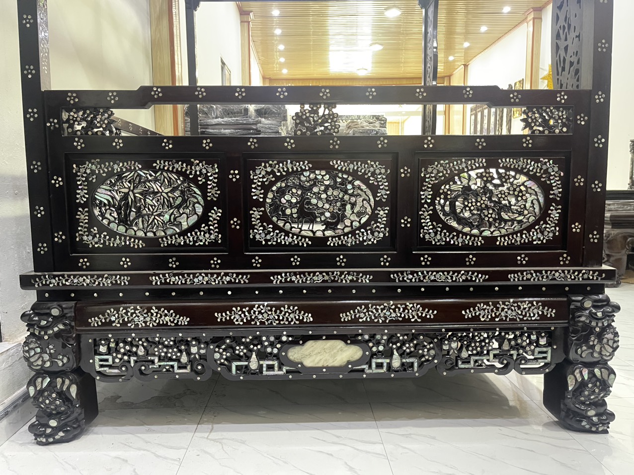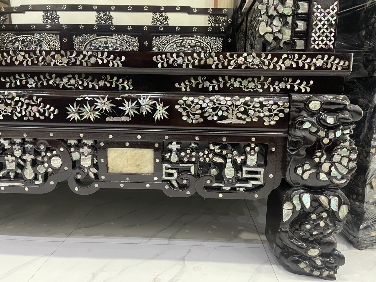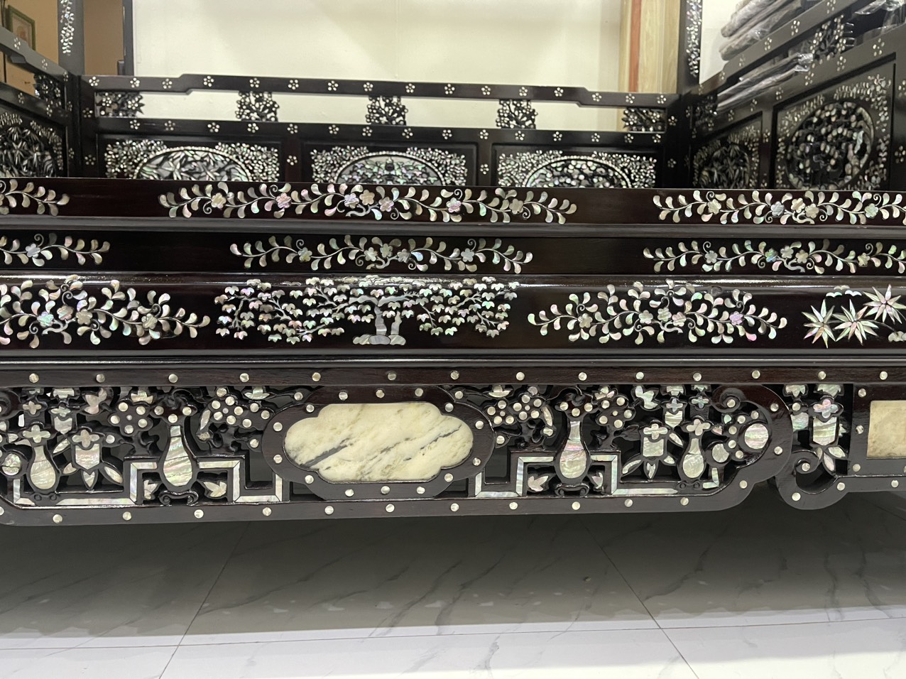 GIƯỜNG LONG SÀN GỖ GỤ MẬT CẨN ỐC SINGAPO
