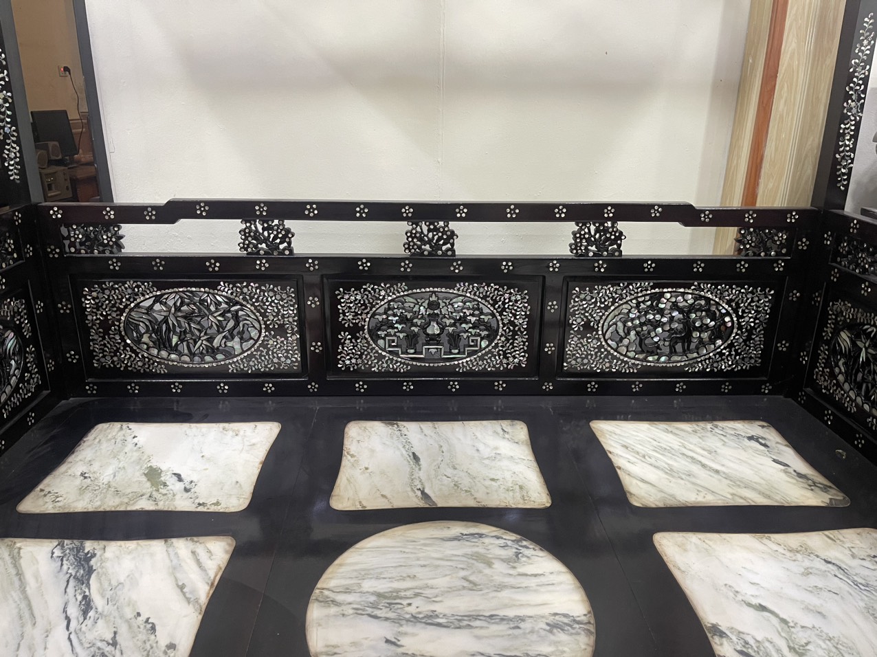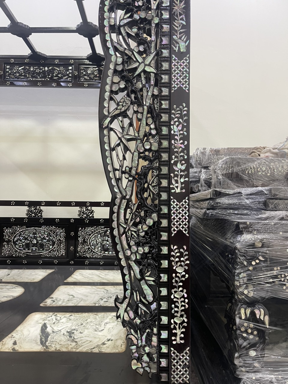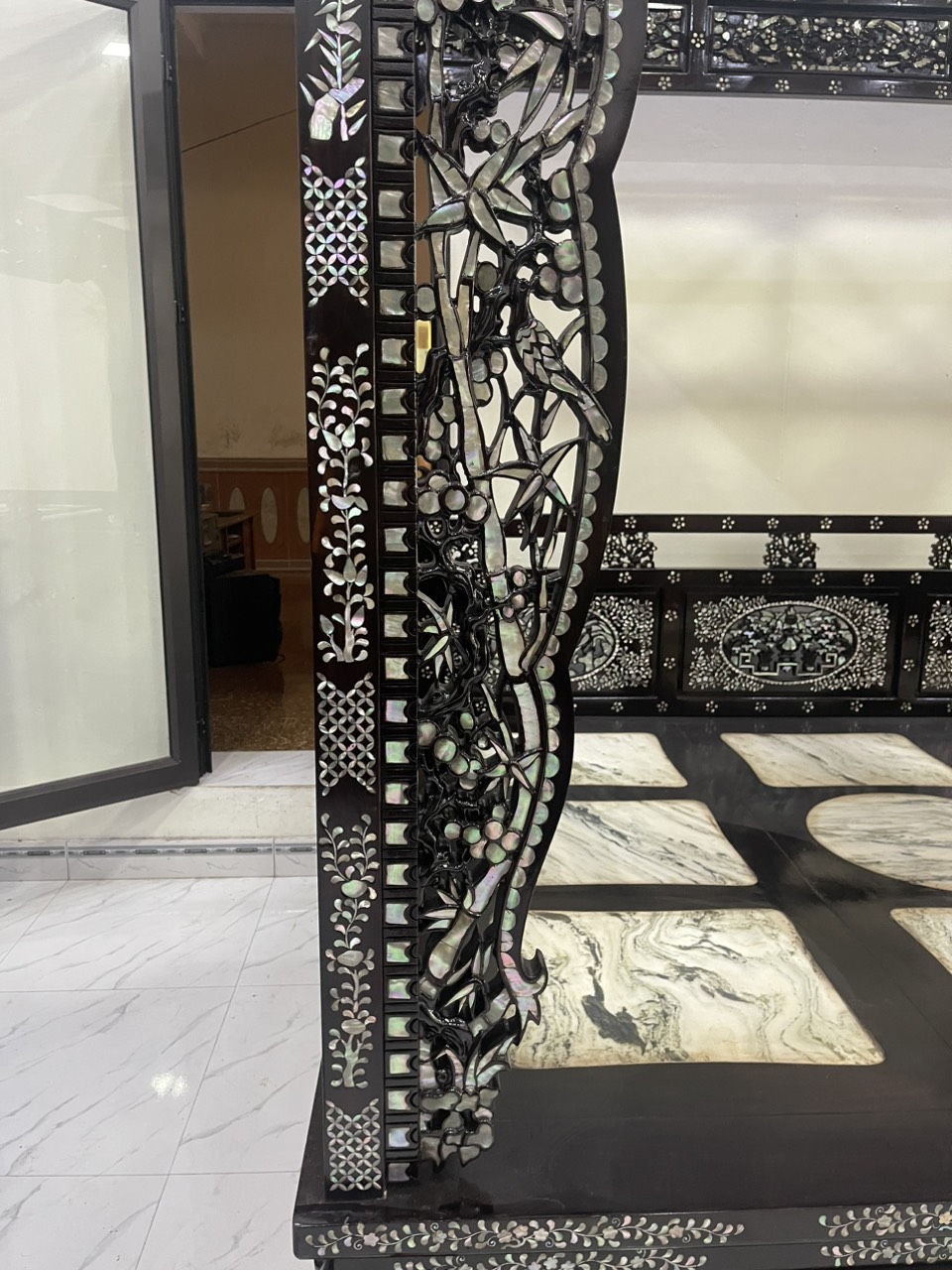 GIƯỜNG LONG SÀN GỖ GỤ MẬT CẨN ỐC SINGAPO