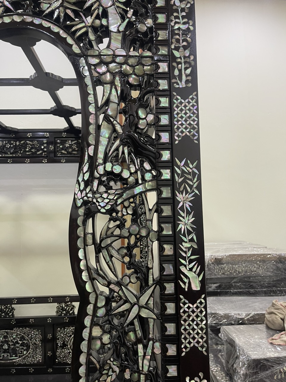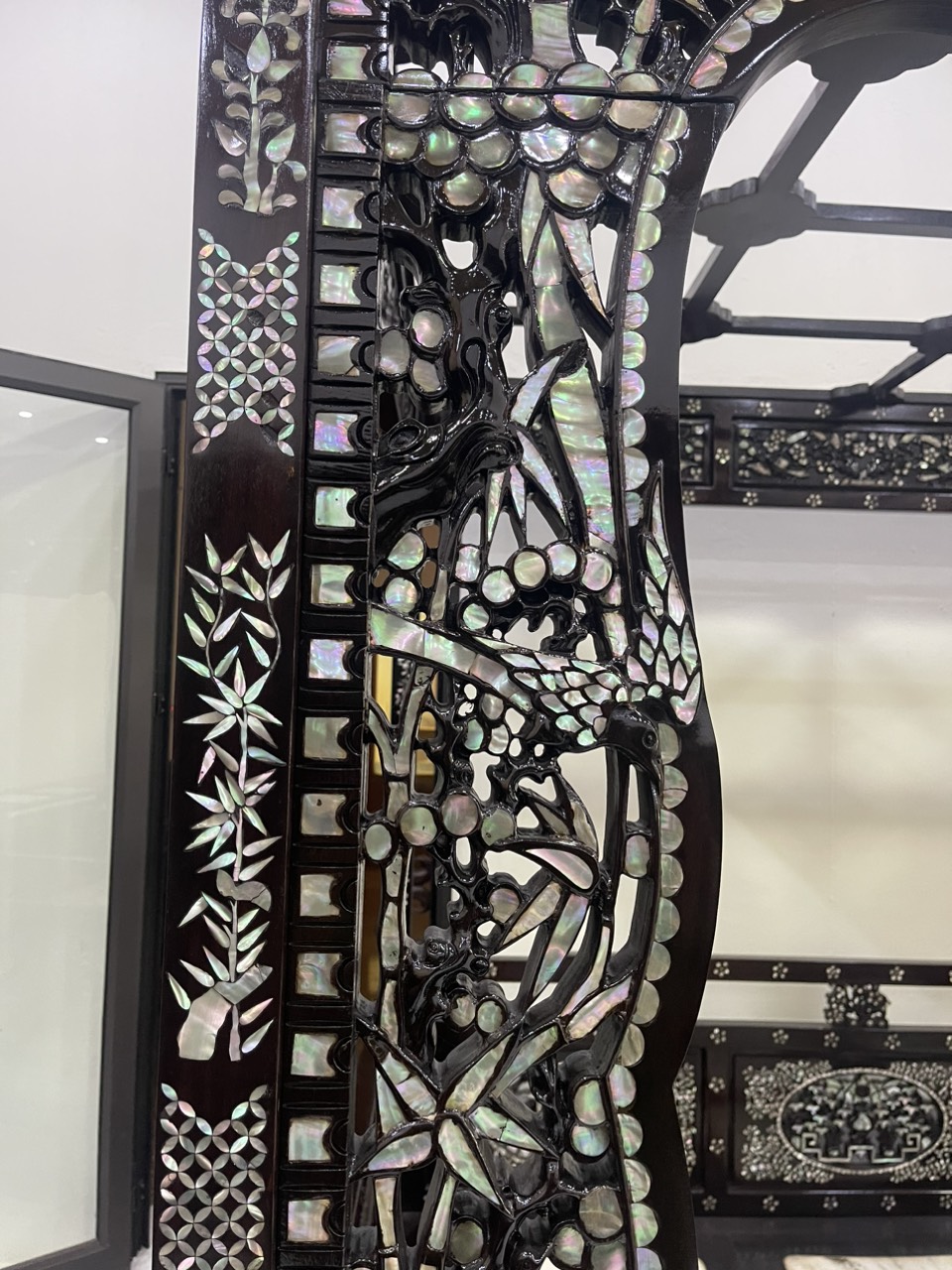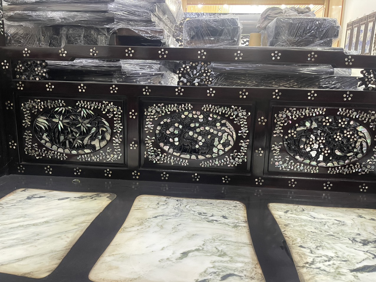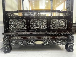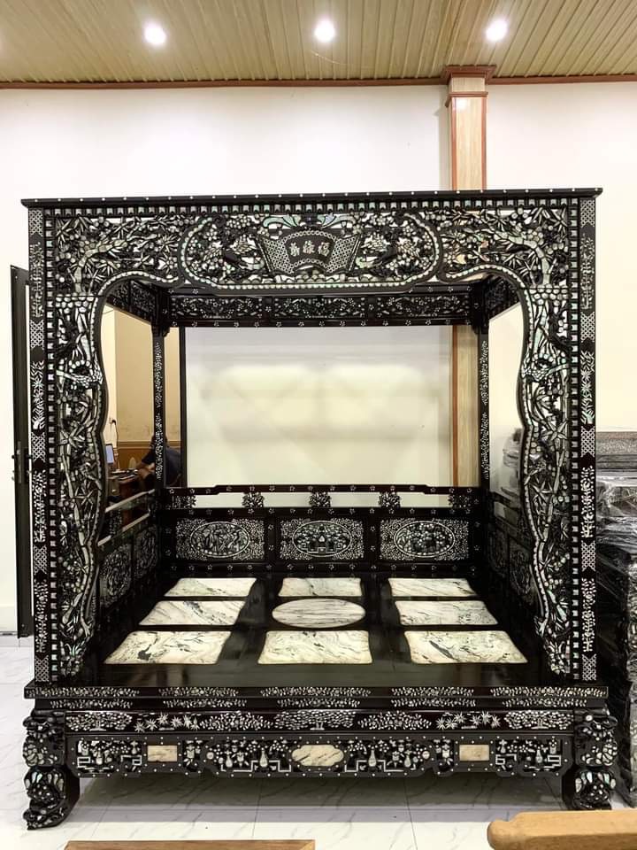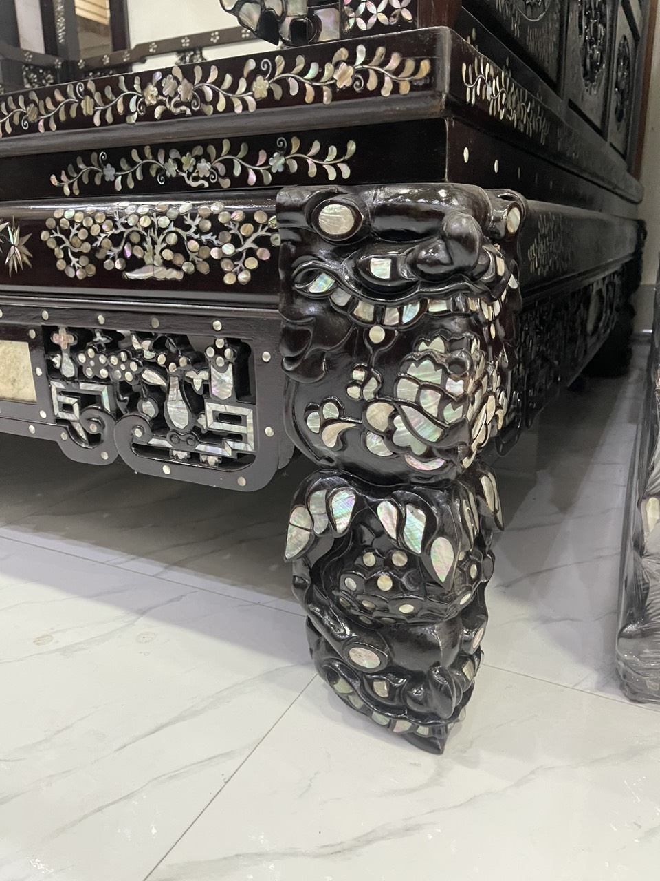 GIƯỜNG LONG SÀN GỖ GỤ (GÕ MẬT ) CẨN ỐC SINGAPO